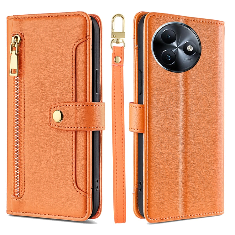 Funda Cuero Tipo Billetera con Cremallera Diseño Oveja para Itel S24 4G (Naranja)