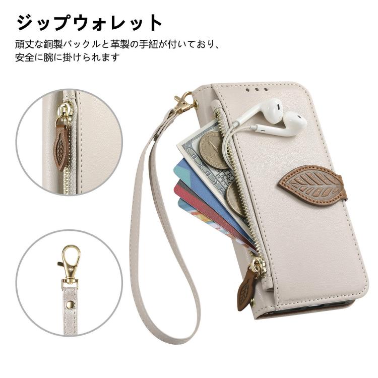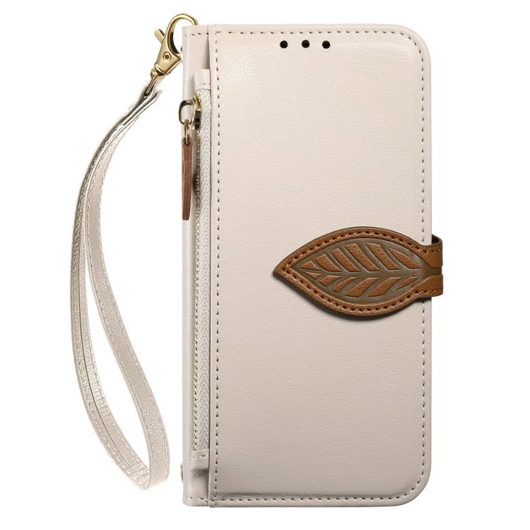 Funda de cuero tipo billetera con cremallera y hebilla de hoja para iPhone 17 (blanco roto)