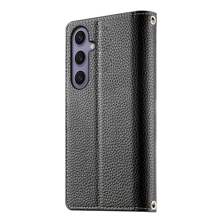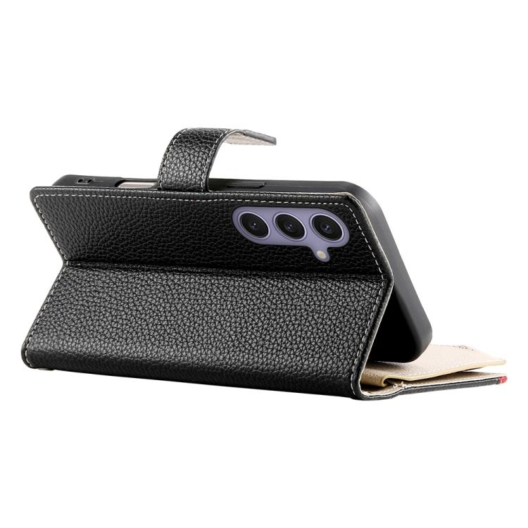 Funda de cuero tipo billetera con cremallera y múltiples tarjetas, con costuras y correa corta para Samsung Galaxy S24+ 5G / S25+ 5G (negra)