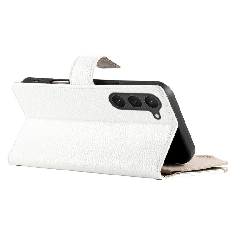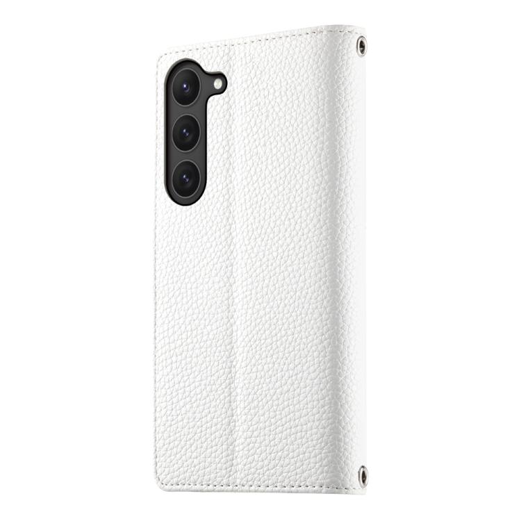 Funda de cuero tipo billetera con cremallera y múltiples tarjetas para Samsung Galaxy S23 5G, con costuras y correa corta (blanca)
