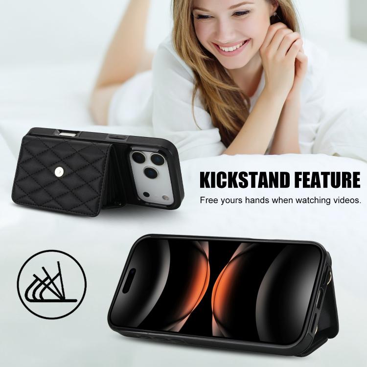 Funda de cuero tipo cartera horizontal con diseño rómbico cruzado para iPhone 17 Pro (negra)