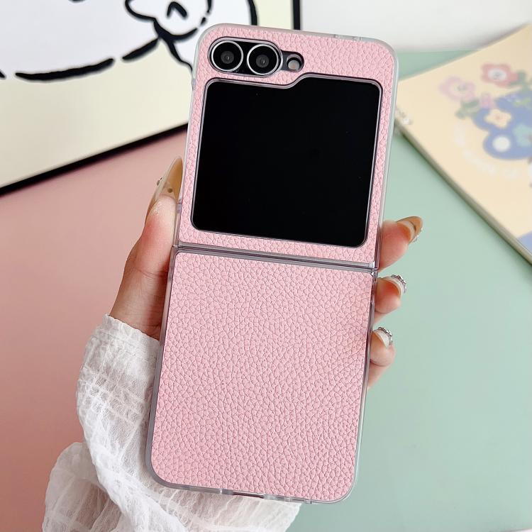 Funda de cuero transparente con textura de lichi para Samsung Galaxy Z Flip6 (rosa)