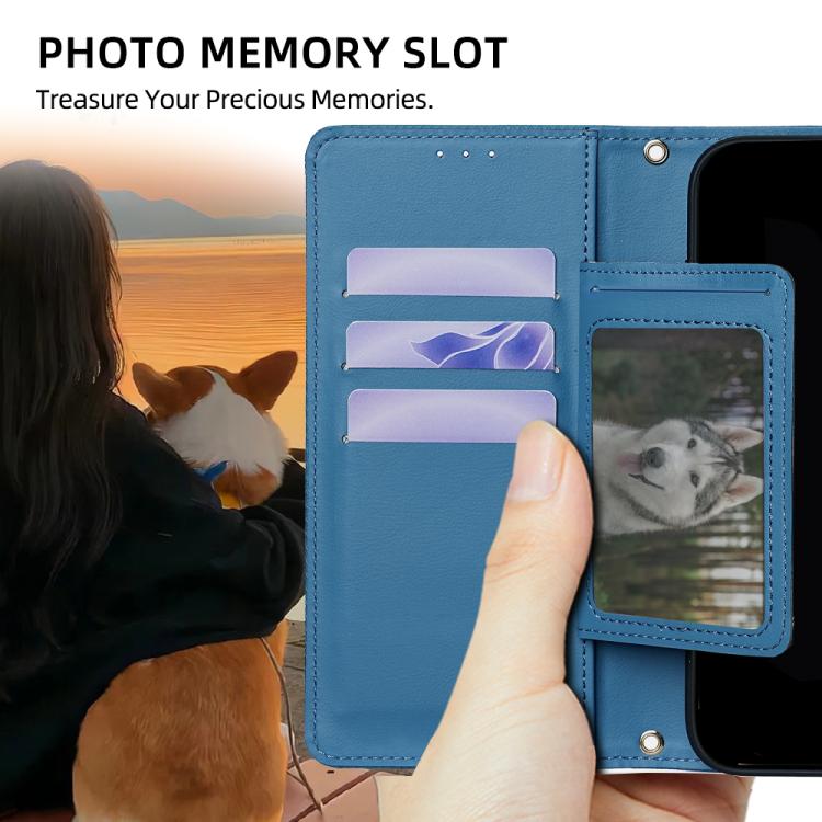 Funda de cuero triangular con cadena cruzada para iPhone 17 (azul)