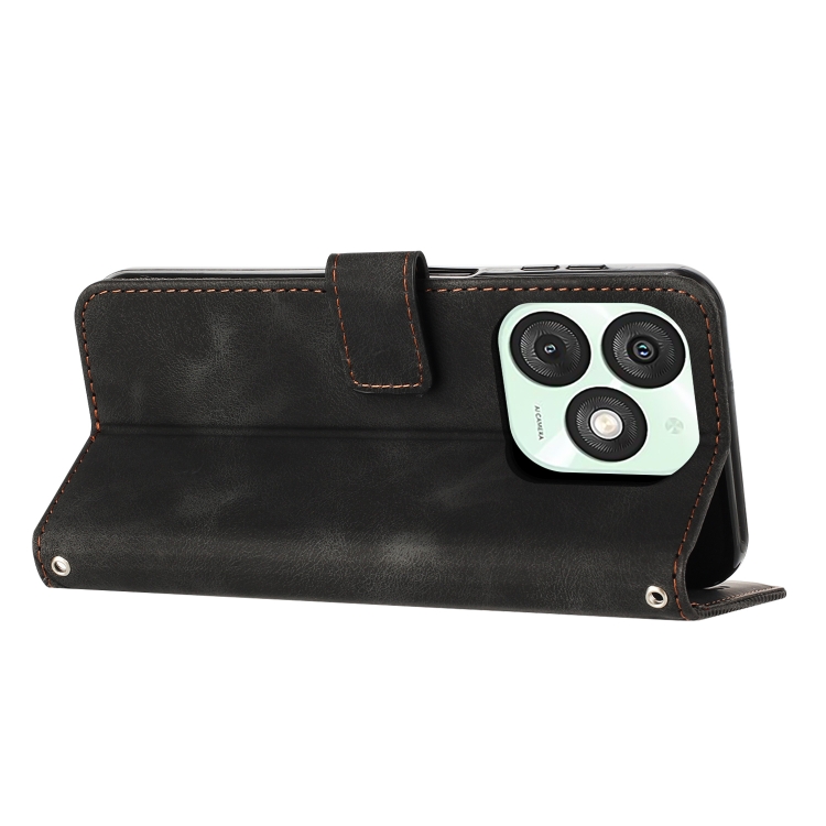 Funda de Cuero Triangular con Cordón Largo para Teléfono Itel A50 Dream (Negro)