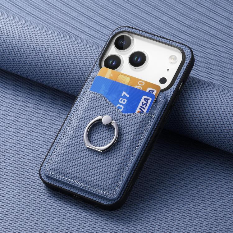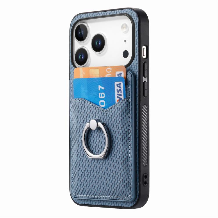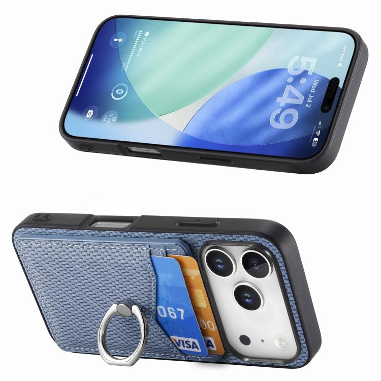 Funda de fibra de carbono con anillo para tarjeta para iPhone 17 Pro (azul)