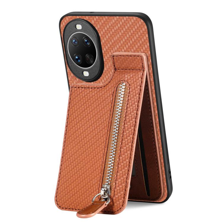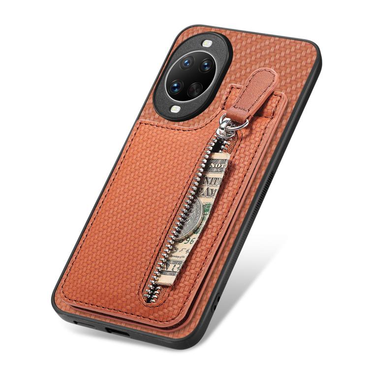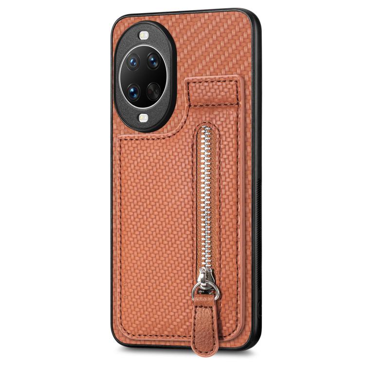 Funda de fibra de carbono con cierre vertical y cremallera para Huawei Nova 14 (marrón)