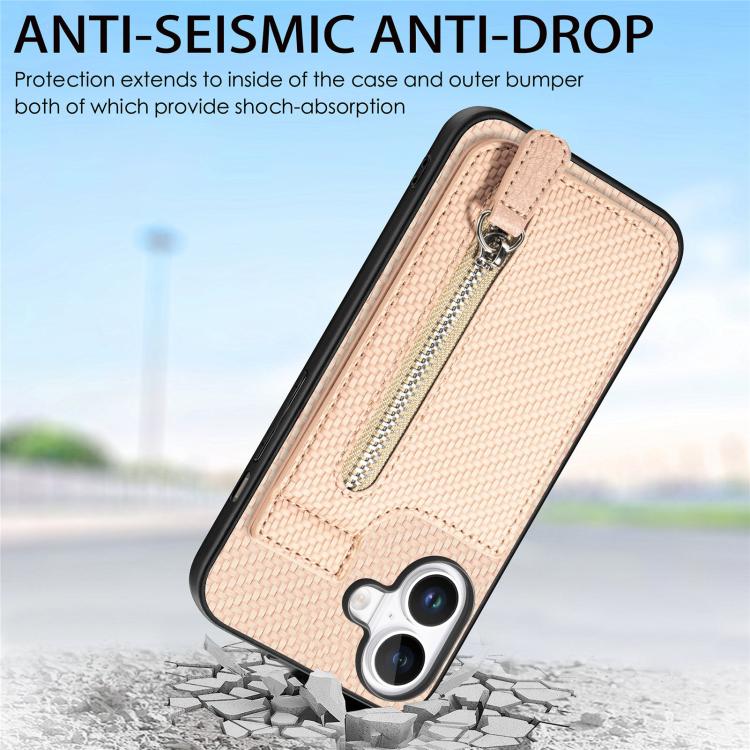 Funda de fibra de carbono con cremallera vertical para iPhone 17 (caqui)