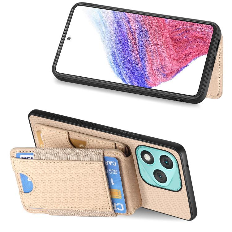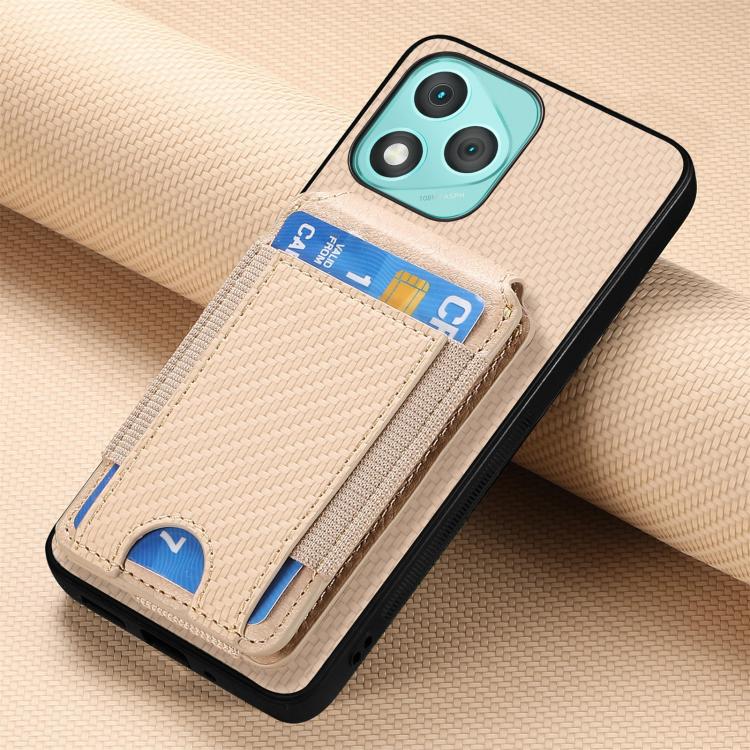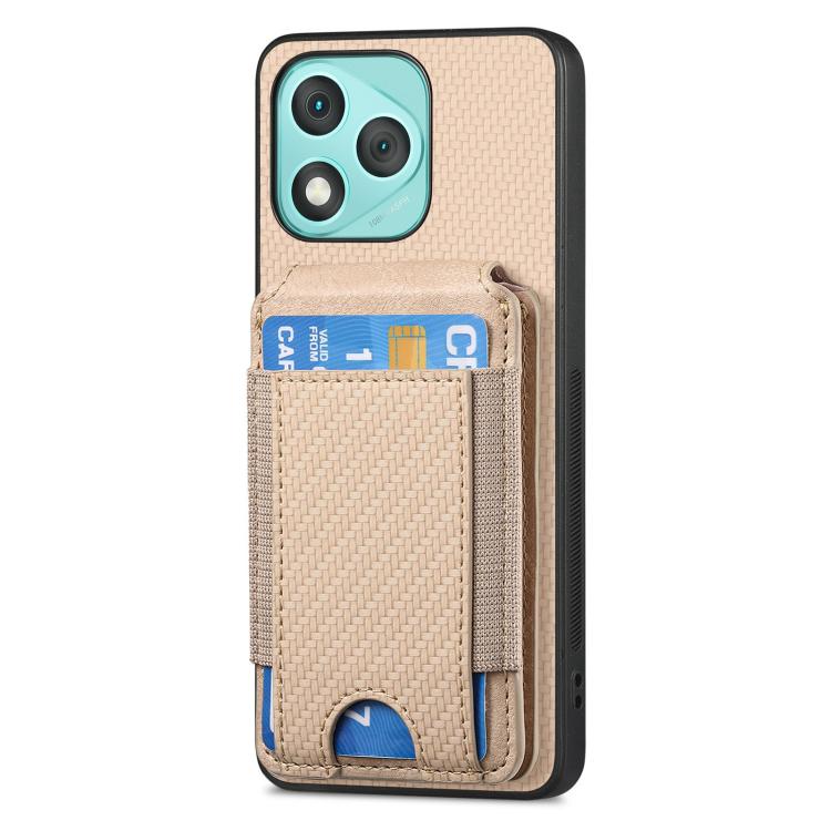 Funda de fibra de carbono con tapa vertical y función atril para Honor 400 Lite (caqui)