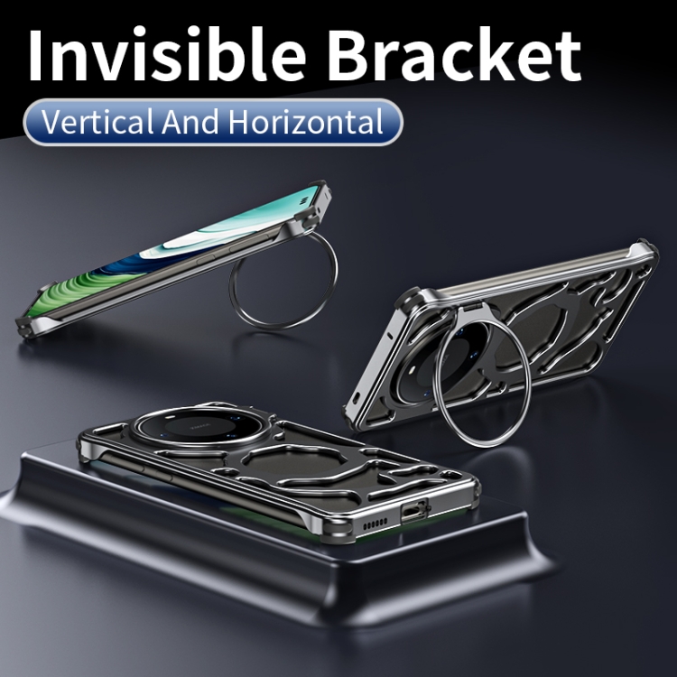 - 1x Funda de Metal MagSafe con Soporte para Huawei Mate 60 Pro+ Auspicious Cloud Series (Gris)
