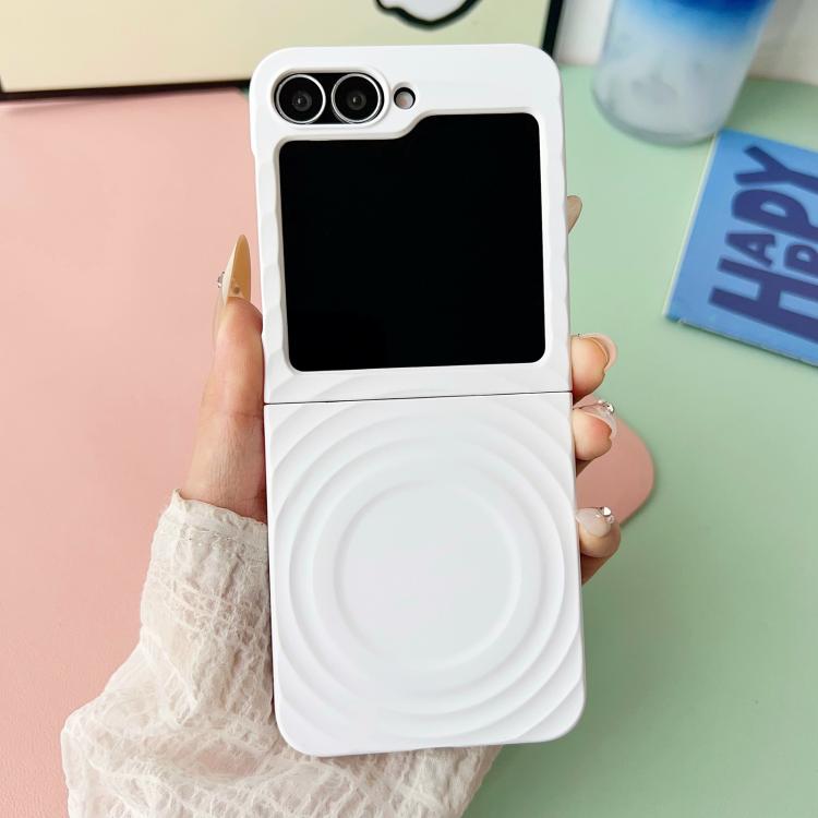 Funda de PC con textura ondulada MagSafe para Samsung Galaxy Z Flip6/Flip5 (blanca)