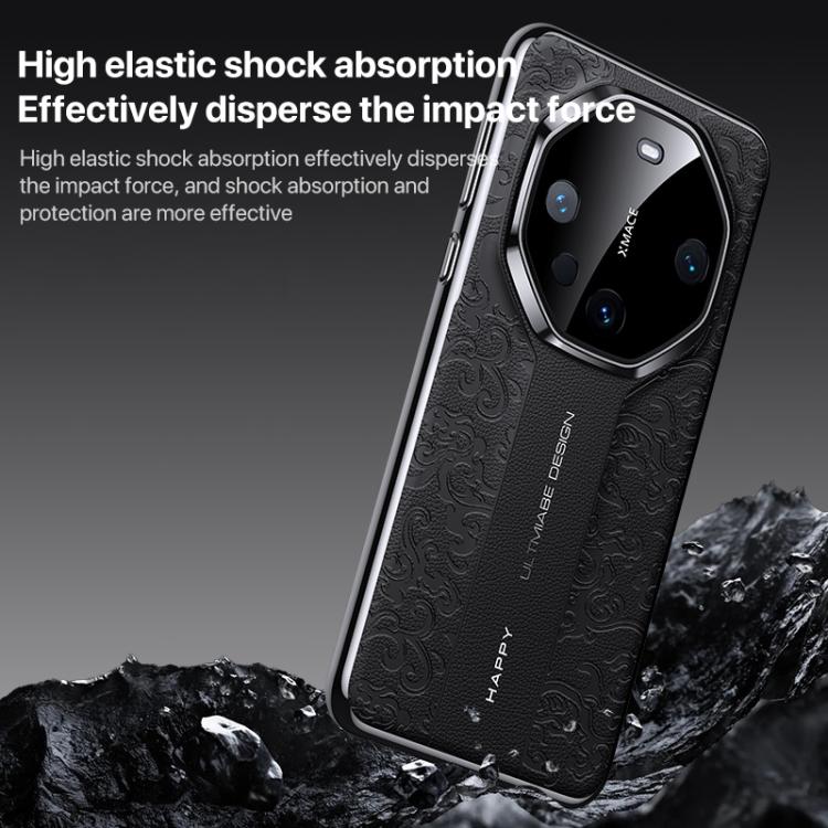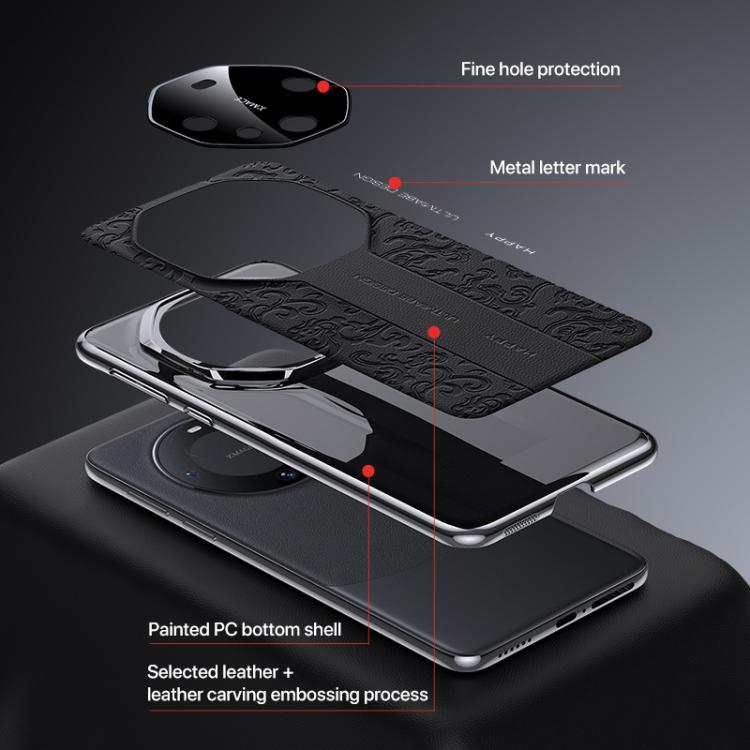 Funda de PC de cuero liso con diseño de dragón en la nube para Huawei nova 14 Ultra (dorada)