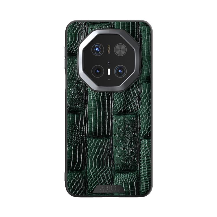 Funda de Piel Auténtica con Micrograbado 6D para Huawei Mate 70 Rs Ultimate con Diseño Abeel Beast (Verde)