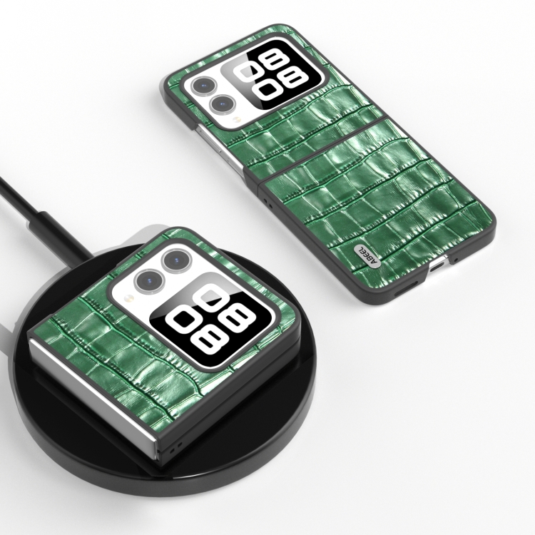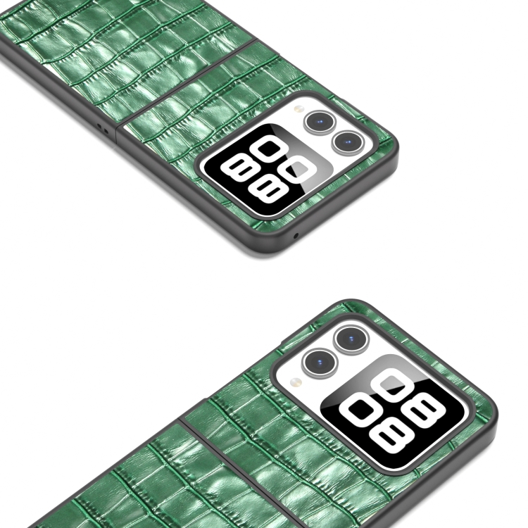 - 1x Funda de Piel Auténtica Abeel con Textura de Cocodrilo para Huawei Nova Flip (Verde)