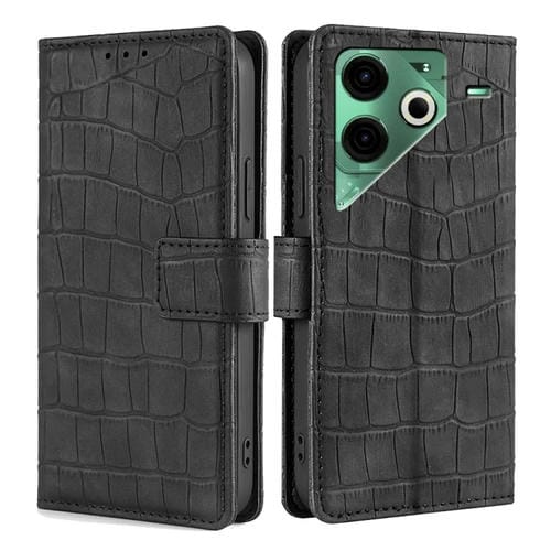 Funda de Piel para Tecno Pova 6 Neo 4G con Cierre Magnético y Diseño de Cocodrilo (Negra)