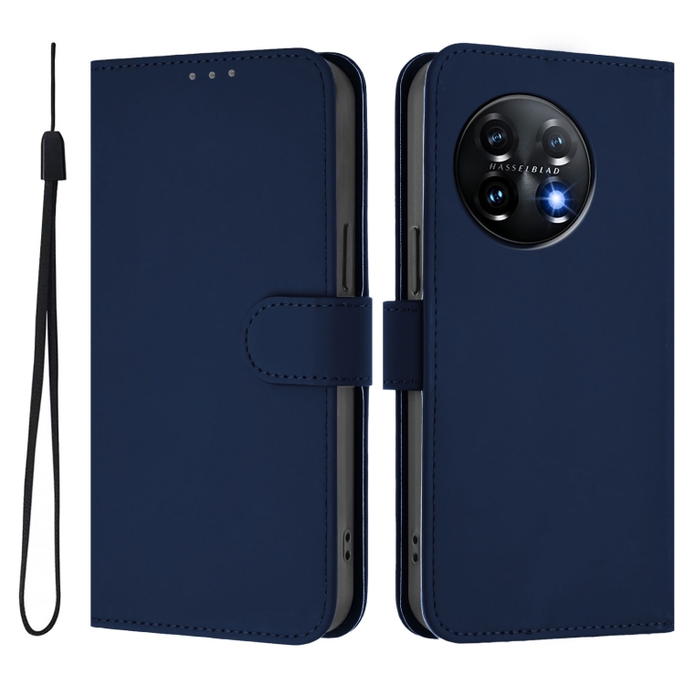Funda de Piel con Cordón para OnePlus 11 con Tacto de Piel (Azul Marino)