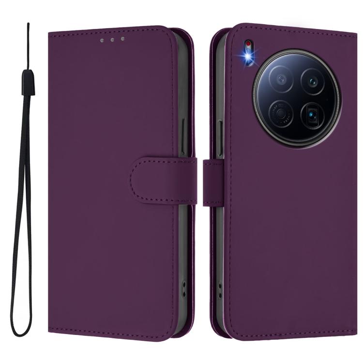 Funda de piel con cordón para Tecno Camon 40 Premier Skin Feel, color liso (violeta)