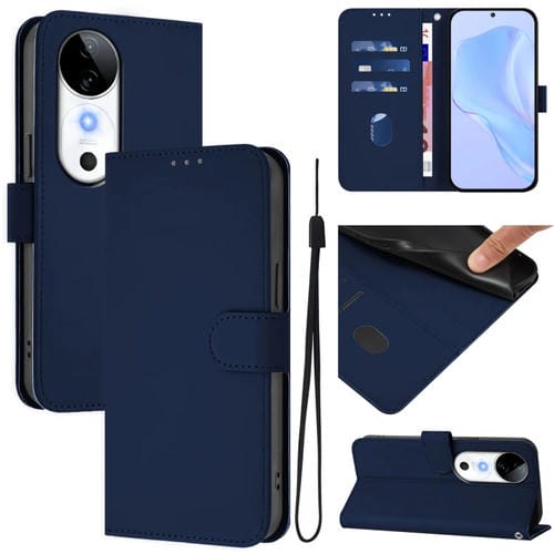 Funda de Piel con Cordón para Teléfono con Diseño de Piel de Color Liso y Tacto Agradable para El Tacto del Vivo S19 (Azul Marino)