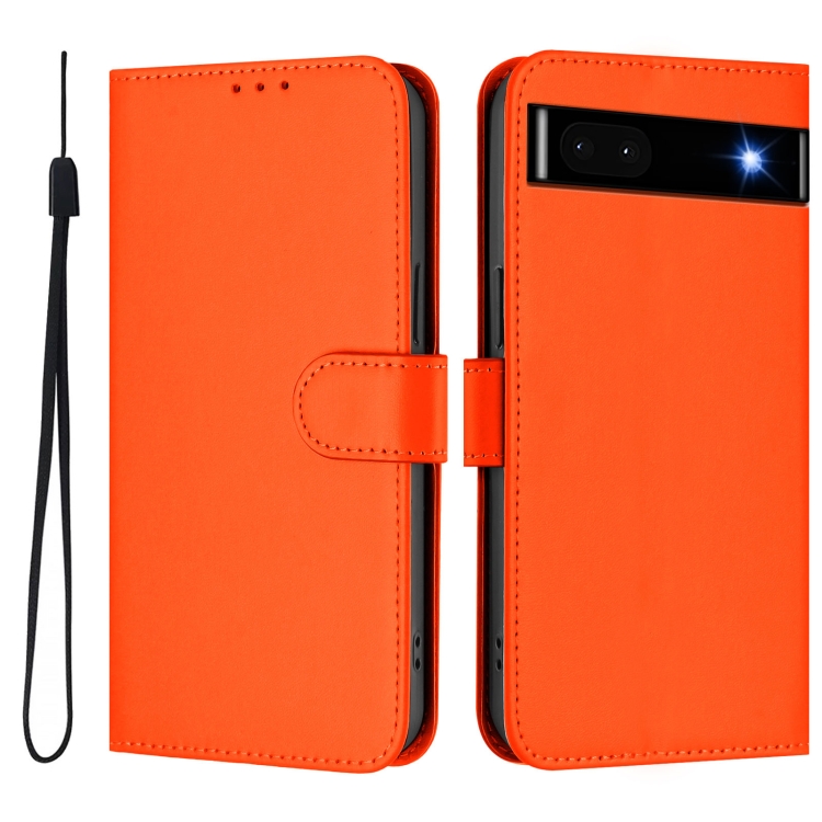 Funda de Piel con Cordón para Google Pixel 6A (Naranja) Diseño Liso y Tacto Agradable