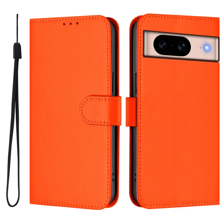 Funda de Piel con Cordón para Google Pixel 8A (Naranja) Diseño Liso y Tacto Agradable