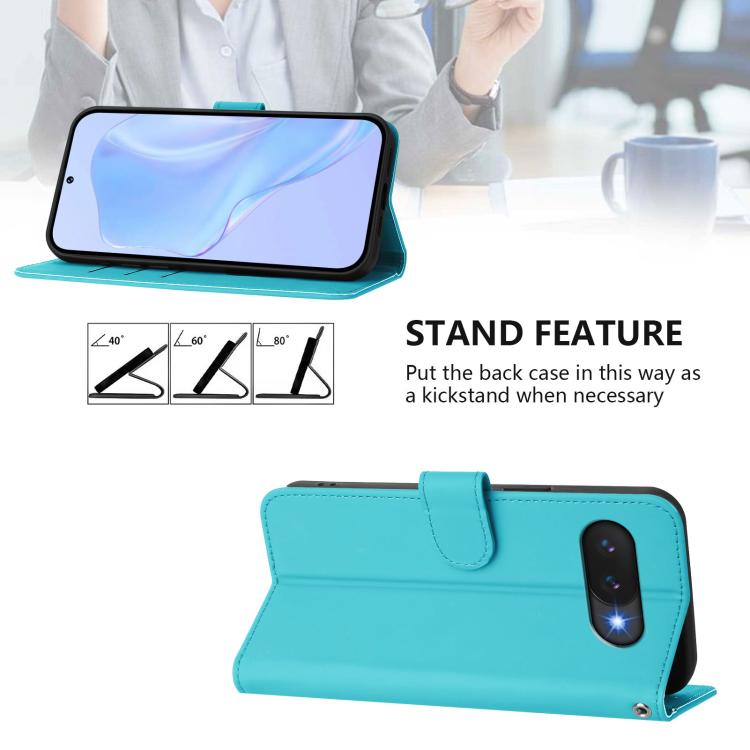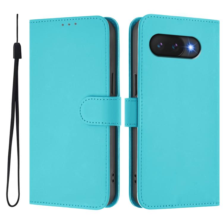 Funda de Piel con Cordón para Google Pixel 9A (Azul Lago) Diseño Liso y Tacto Agradable