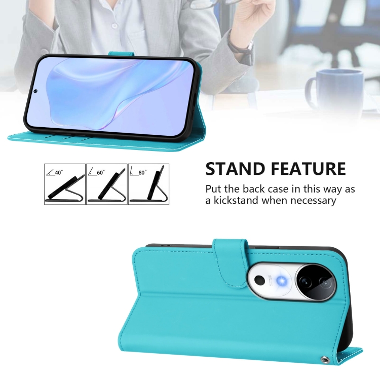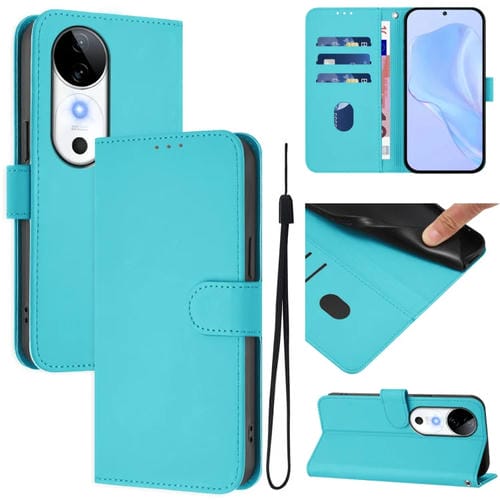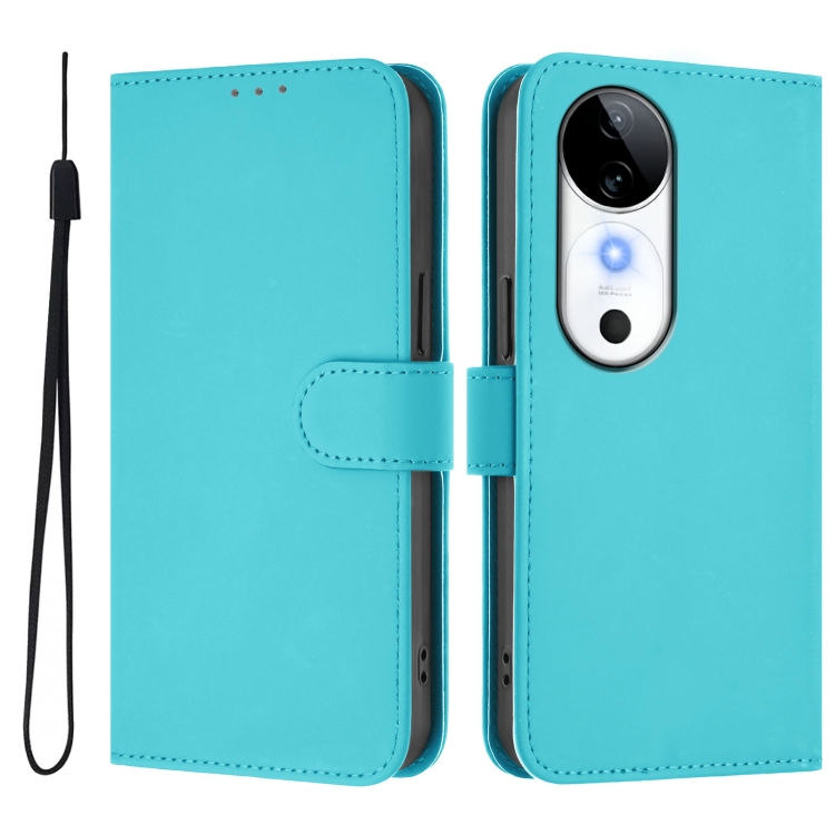 Funda de Piel con Cordón para Teléfono con Diseño de Piel Sintética de Color Liso para Vivo S19 (Azul Lago)