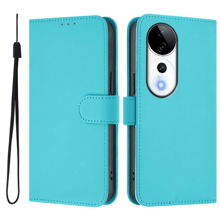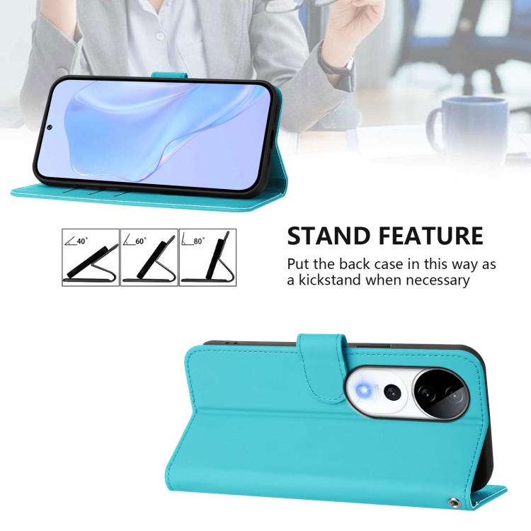 Funda de Piel con Cordón para Teléfono con Diseño de Piel Sintética de Color Liso para Vivo S19 Pro (Azul Lago)