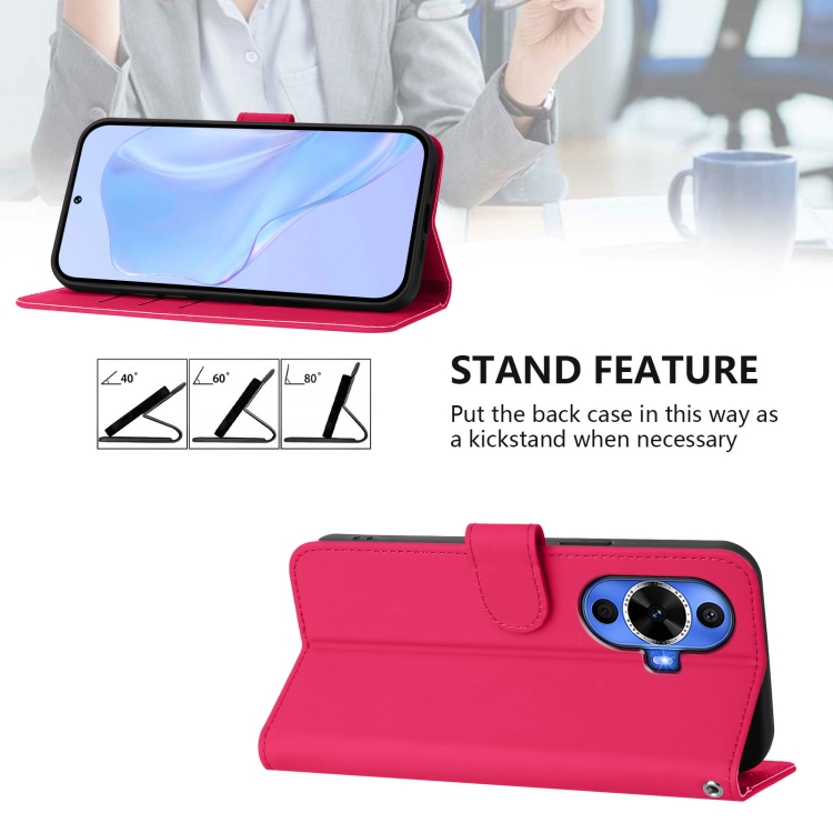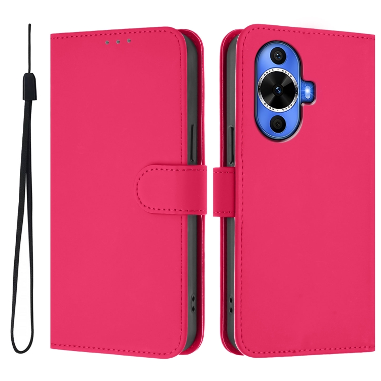 Funda de Piel con Cordón para Huawei Nova 12S 4G con Tacto de Piel (Rosa Rojo)