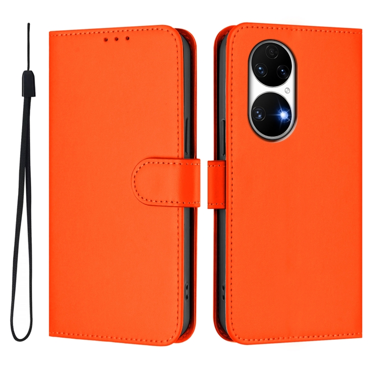 Funda de Piel con Cordón para Huawei P50 Skin Feel (Naranja)
