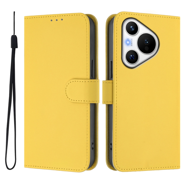Funda de Piel con Cordón para Teléfono Huawei Pura 70 Skin Feel (Amarillo Limón)