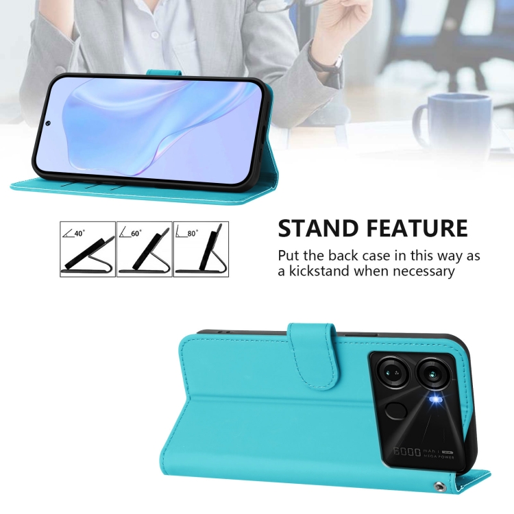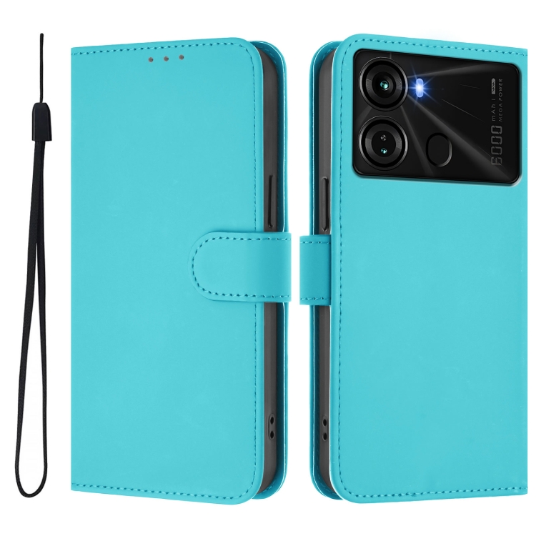 Funda de Piel con Cordón para Teléfono Itel P40 Skin Feel (Azul Lago)