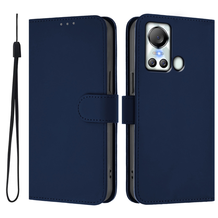 Funda de Piel con Cordón para Teléfono Itel S18/Vision 5 con Tacto de Piel (Azul Marino)