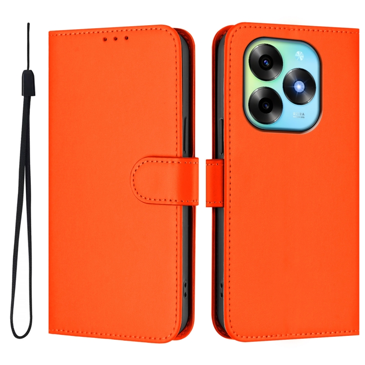 Funda de Piel con Cordón para Teléfono Itel S23+ con Acabado Liso (Naranja)