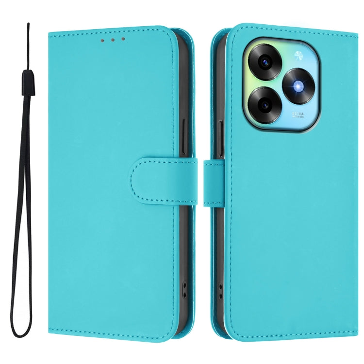 Funda de Piel con Cordón para Teléfono Itel S23+ con Tacto de Piel (Azul Lago)