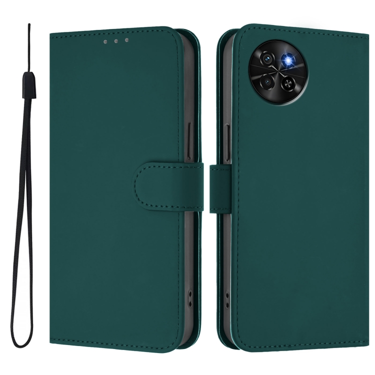 Funda de Piel con Cordón para Teléfono Itel S23 Skin Feel (Verde Oscuro)
