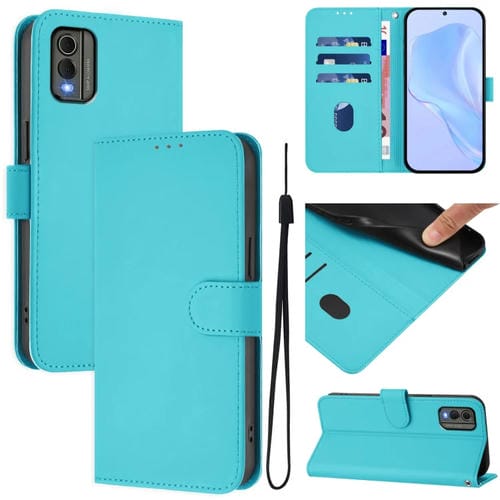 Funda de Piel con Cordón para Nokia C32 con Acabado Liso (Azul Lago)