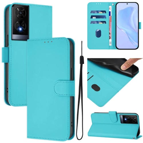 Funda de Piel con Cordón para TCL 50 Xe con Tacto de Piel (Azul Lago)