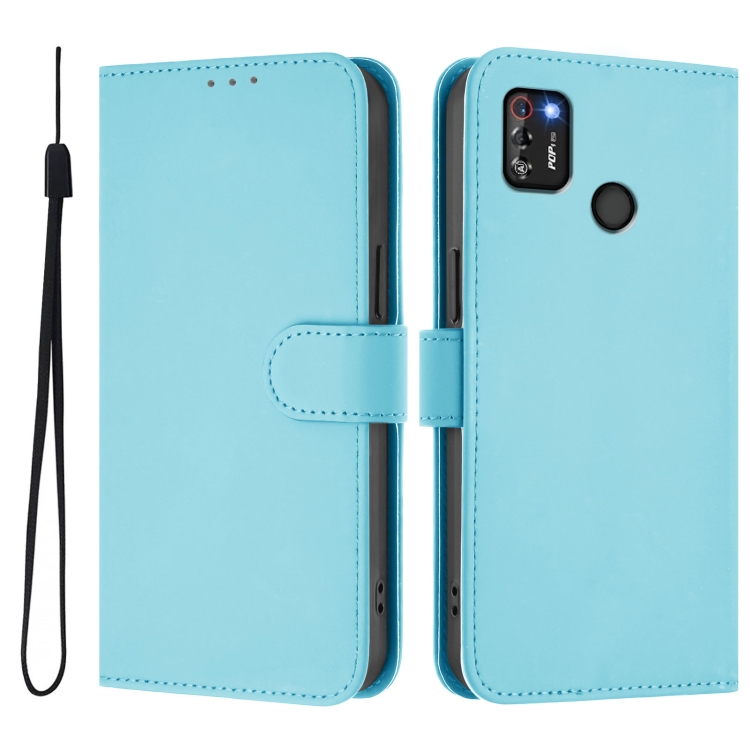 Funda de Piel con Textura y Cordón para Tecno Pop 4 Pro (Azul Cielo)