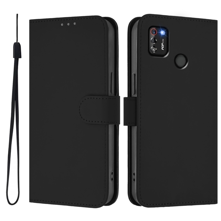Funda de Piel para Tecno Pop 4 Pro con Textura Lisa y Cordón (Negro)
