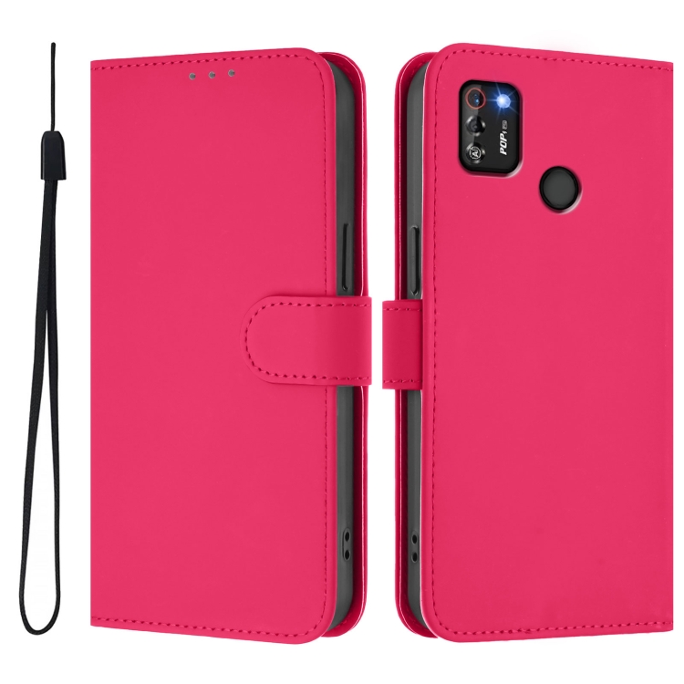 Funda de Piel para Tecno Pop 4 Pro con Textura Lisa y Cordón (Rosa)