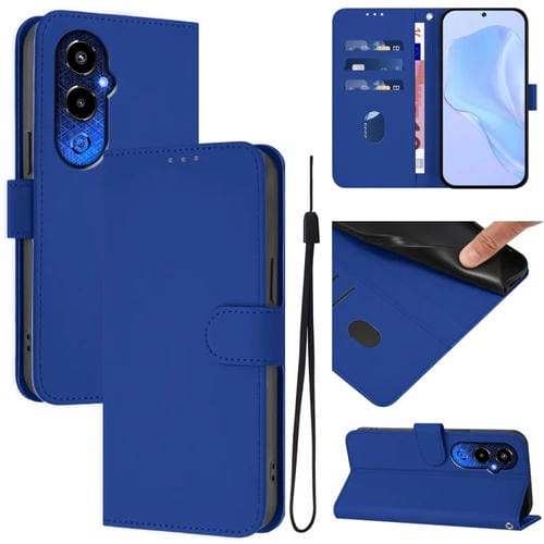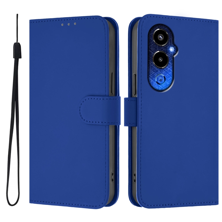 Funda de Piel para Tecno Pova 4 Pro con Textura Lisa y Cordón (Azul Oscuro)