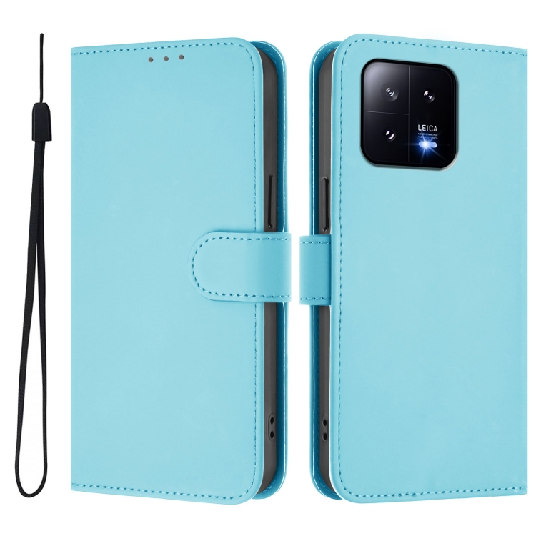 Funda de Piel con Cordón para Teléfono Xiaomi 13 5G con Tacto de Piel de Color Liso (Azul Cielo)