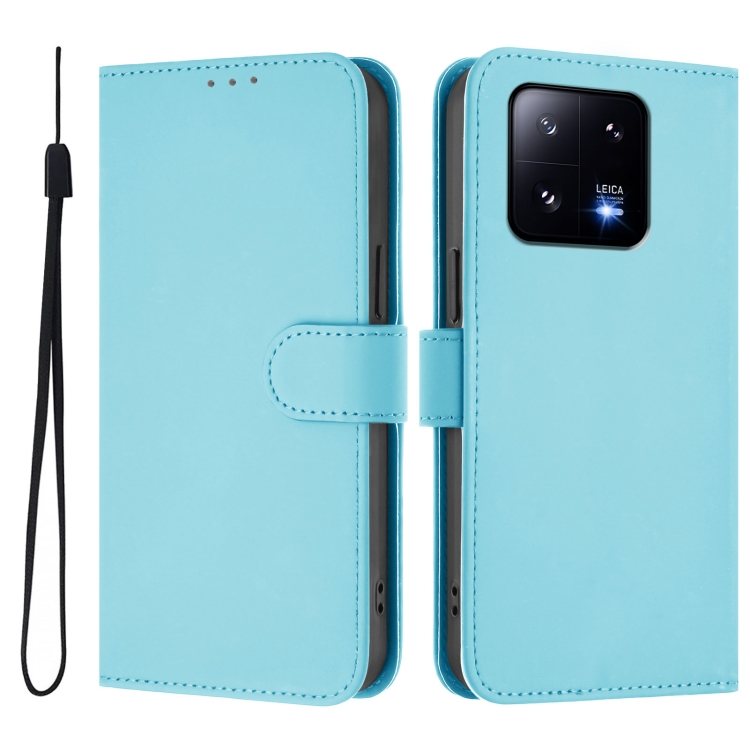 Funda de Piel con Cordón para Teléfono Xiaomi 13 Pro 5G con Tacto de Piel de Color Liso (Azul Cielo)