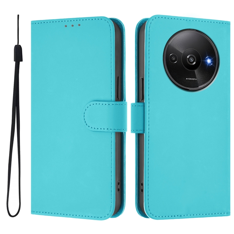 Funda de Piel con Cordón para Teléfono Xiaomi Poco C61 4G con Tacto de Piel de Color Liso (Azul Lago)