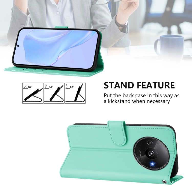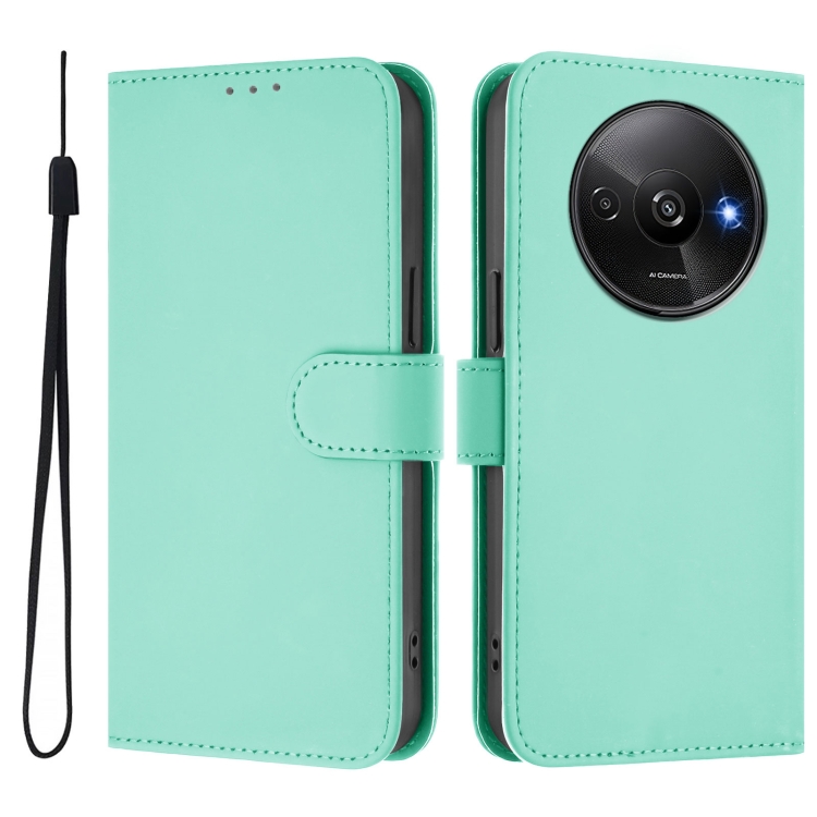 Funda de Piel con Cordón para Teléfono Xiaomi Poco C61 4G con Tacto de Piel de Color Liso (Verde Menta)