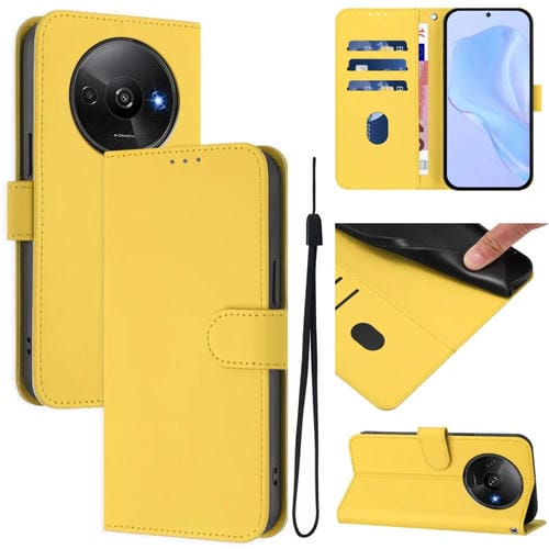 Funda de Piel con Cordón para Teléfono Xiaomi Poco C61 4G con Tacto de Piel Global En Color Liso (Amarillo Limón)