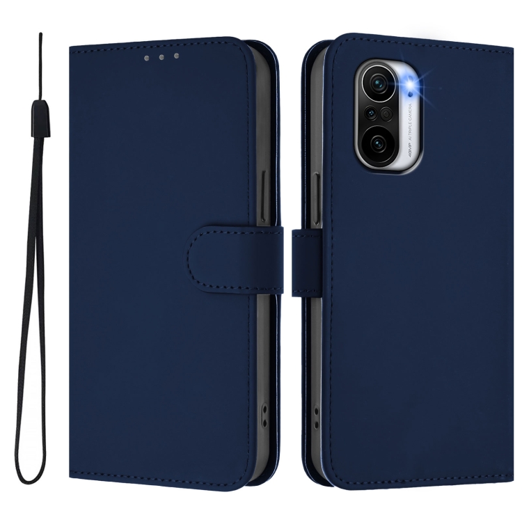 Funda de Piel con Cordón para Teléfono Xiaomi Poco F3 con Acabado En Color Liso (Azul Marino)