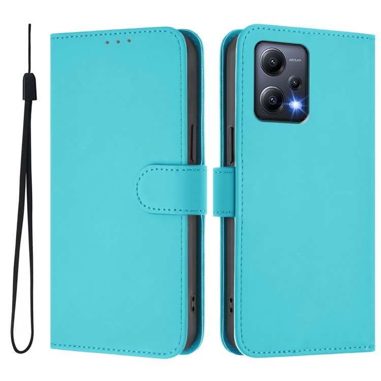 Funda de Piel con Cordón para Teléfono Xiaomi Poco X5 con Textura de Piel de Color Liso (Azul Lago)
