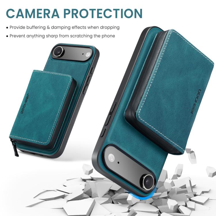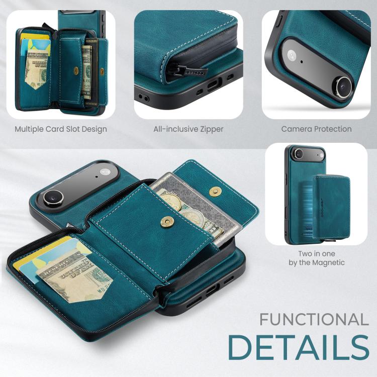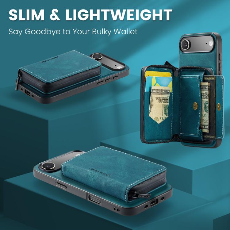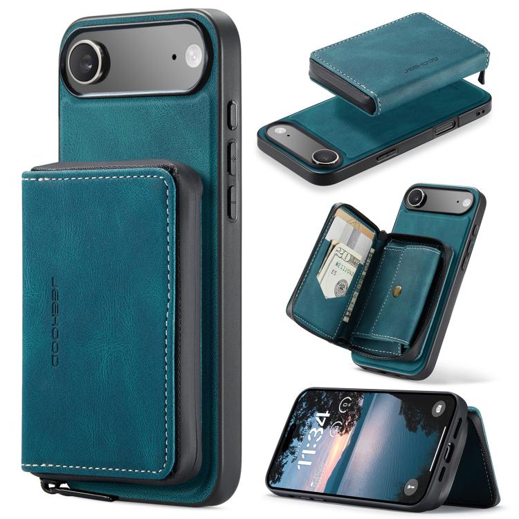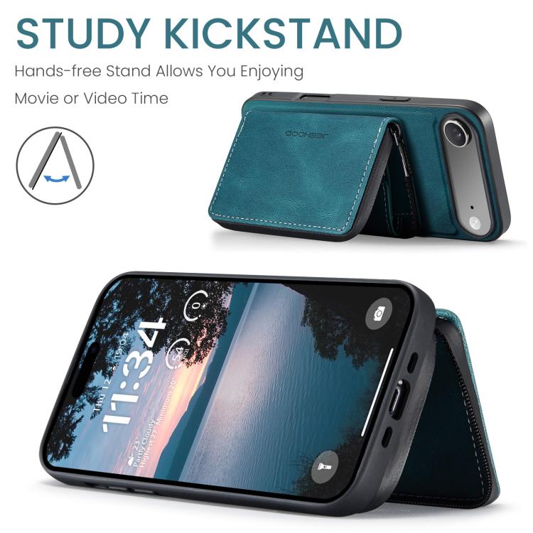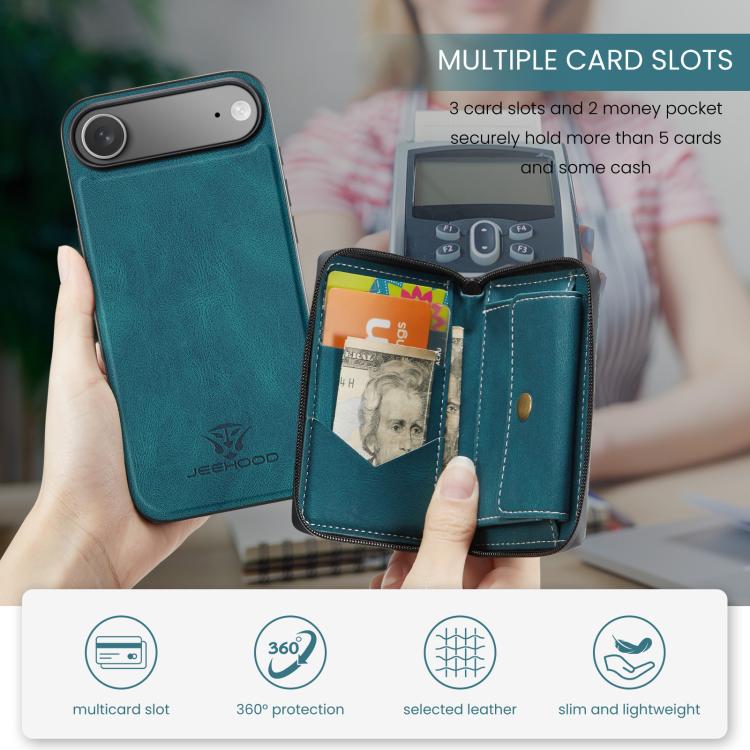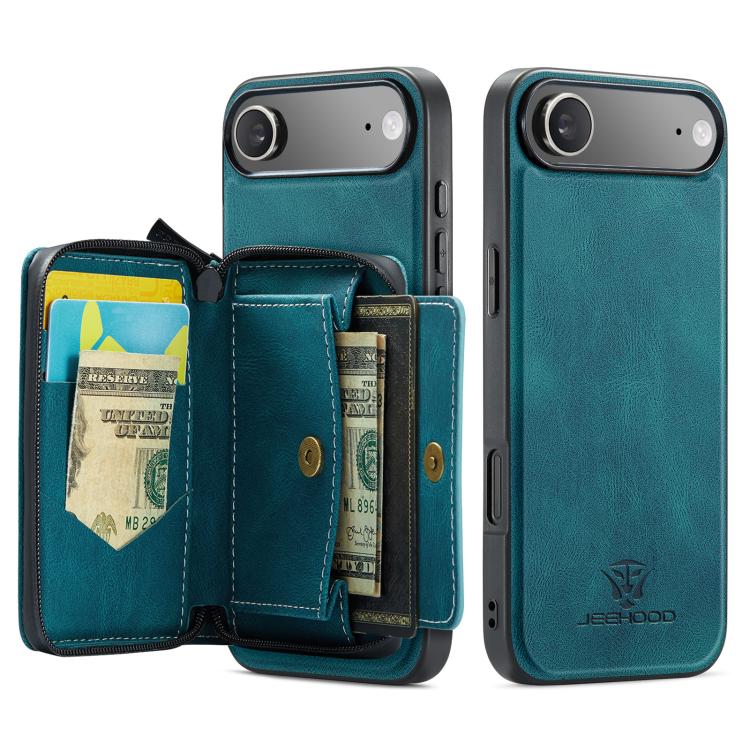 Funda de piel con cremallera magnética JEEHOOD J02 tipo libro horizontal para iPhone Air (Azul)