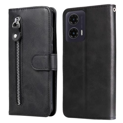 Funda de Piel con Cremallera para Motorola Moto G35 (Negra) Textura de Becerro