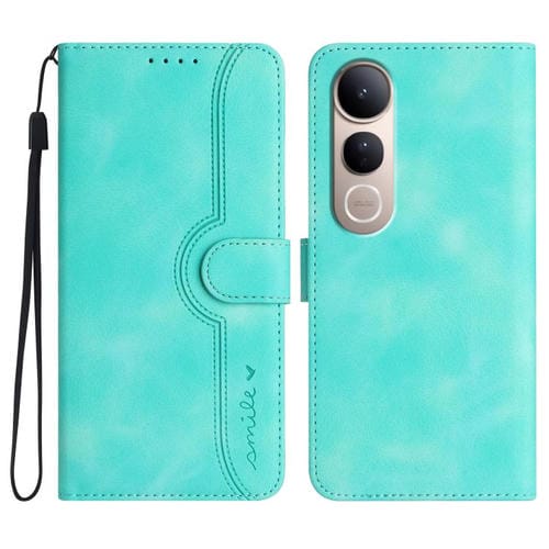 Funda de Piel con Diseño de Corazón para Vivo V50 Lite 4G/5G (Azul Claro)